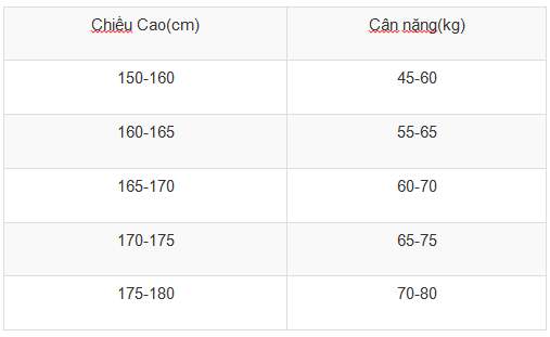 Tiêu chuẩn chiều cao và cân nặng